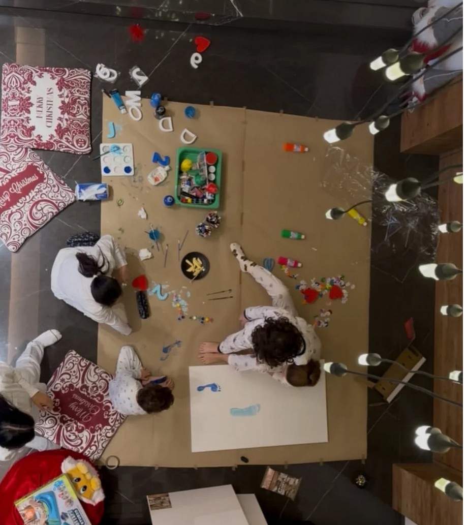 وظهر في اللقطات أولادها جايدن ودايف متري، وهما يتشاركان معها بالنشاطات والألعاب التي تختارها وتنفذها في منزلها الفخم.