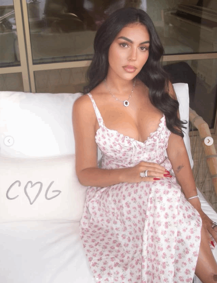 في المنشور الذي تابعه أكثر من 67 مليون متابع، ظهرت جورجينا بفستان أبيض مطبّع بالورود، وسط ديكور رومانسي ضم طاولة مزينة بالشموع والزهور، مع وسادة مطرزة بحرفي "C" و"G" يتوسطهما قلب، في إشارة رمزية واضحة إلى اسميها واسم رونالدو.