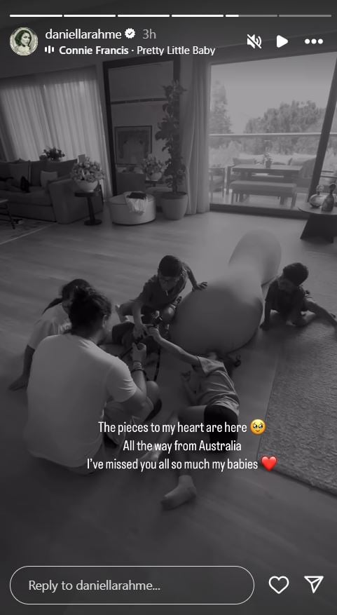 ونشرت دانييلا رحمة مقطع فيديو عبر خاصية القصص المصورة على انستغرام، ظهرت فيها وهي تلعب مع أولاد شقيقتها "دنيا" وكتبت: "قطع قلبي هنا. قادمين من أستراليا. اشتقت إليكم جميعًا كثيرًا يا أطفالي".