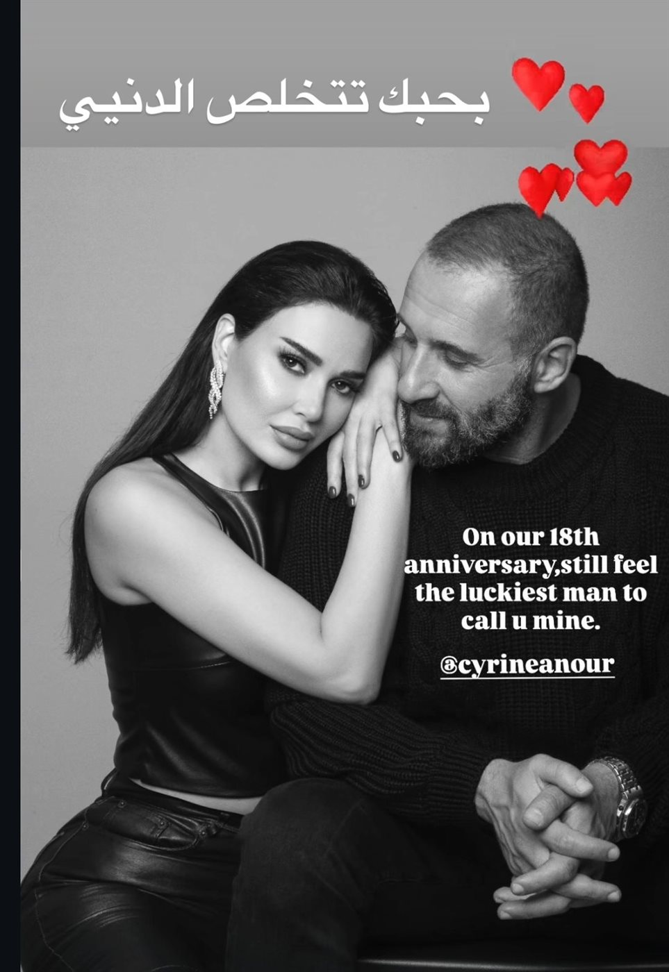برسالة رومنسية.. زوج سيرين عبد النور يحتفل بذكرى زواجهما الـ18