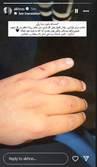 وأضاف: "الحمدلله مليون مرة، حادث مرق بثواني.. وكان كفيل يغيّر كلّ شي. بس لطف ربنا أعظم من كلّ خوف".